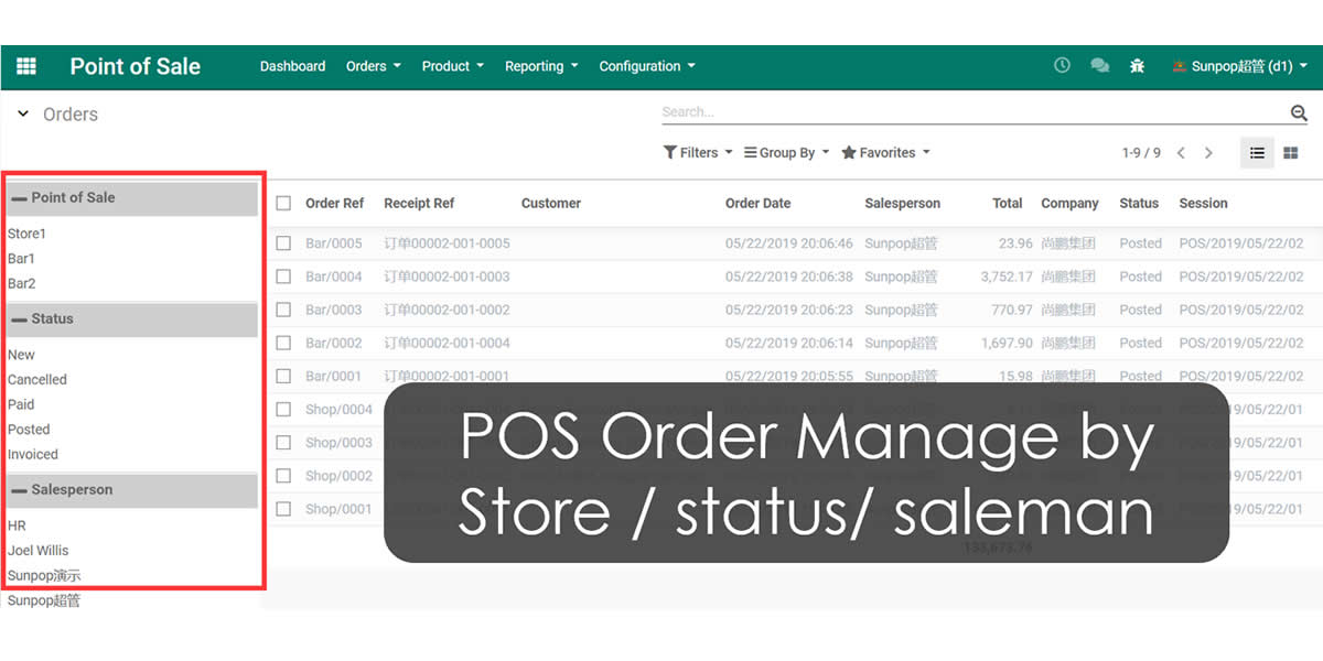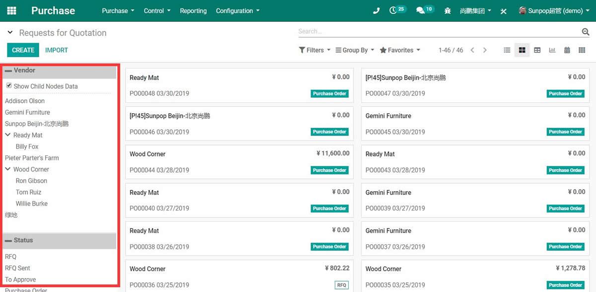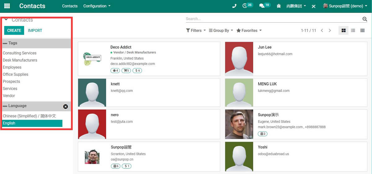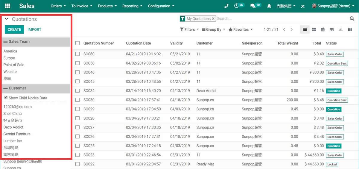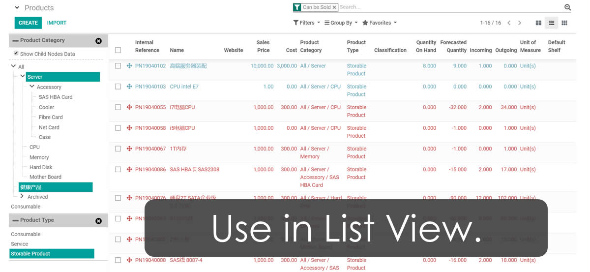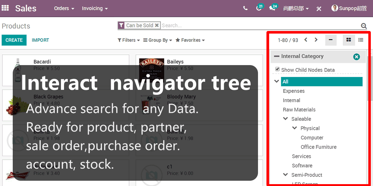 Easy to navigator and browse any data. Support list, kanban, pivot, graph view.