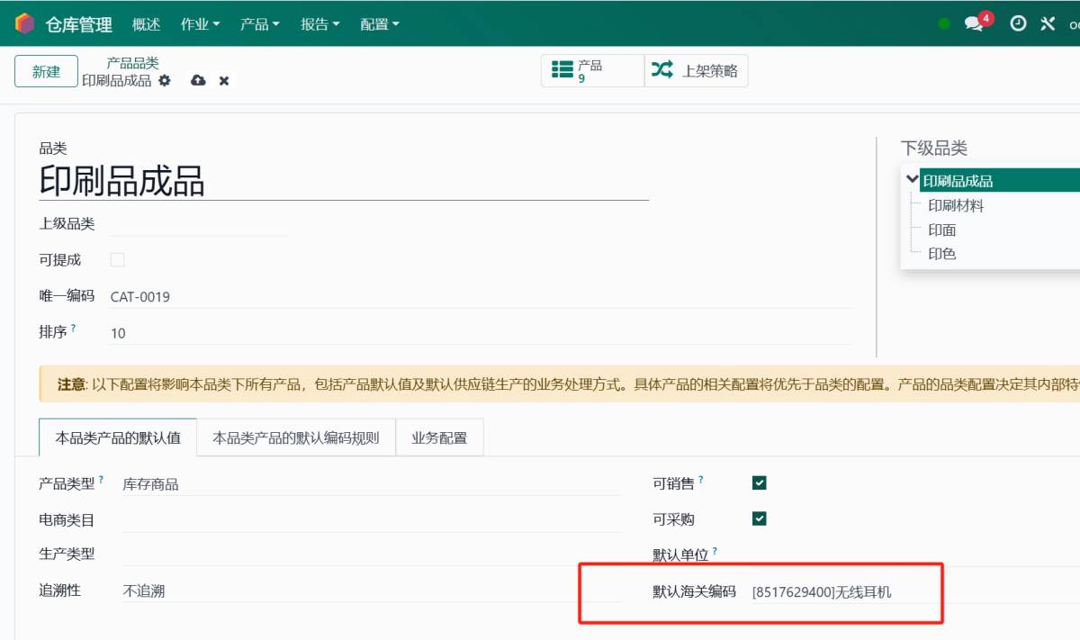 为品类设置默认hscode,该品类中的产品默认都为该hscode,可再更改