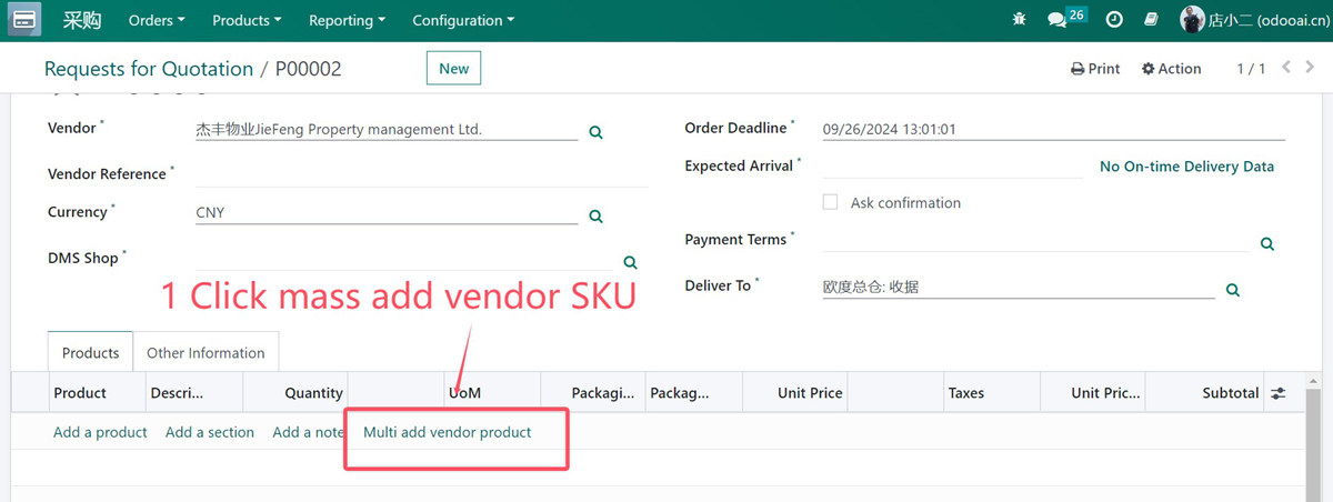 1 Click to So Mass add Vendor Sku to Purchase Order