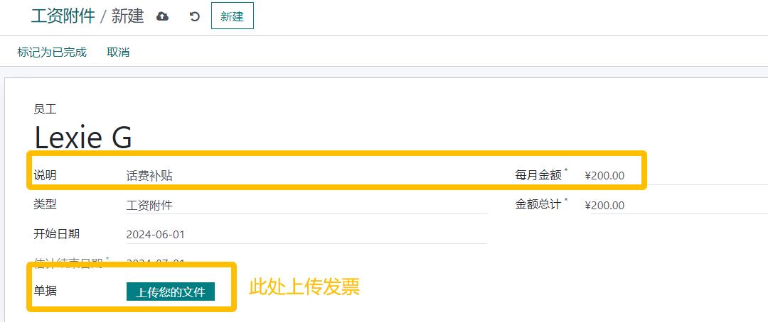 工资附件可作为补贴的补充,可上传发票收据等凭证。按月发放。