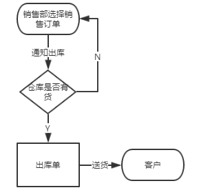 由销售部通知仓库进行发货,仓库选取货物,生成出库单,送货给客户。仓库也可以选取销售订单自行出库