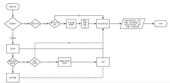 3.销售发票:业务员勾选相应的订单生成开票申请,下推到财务,财务开票,开好后关联生成发票,发票能生成记账凭证。